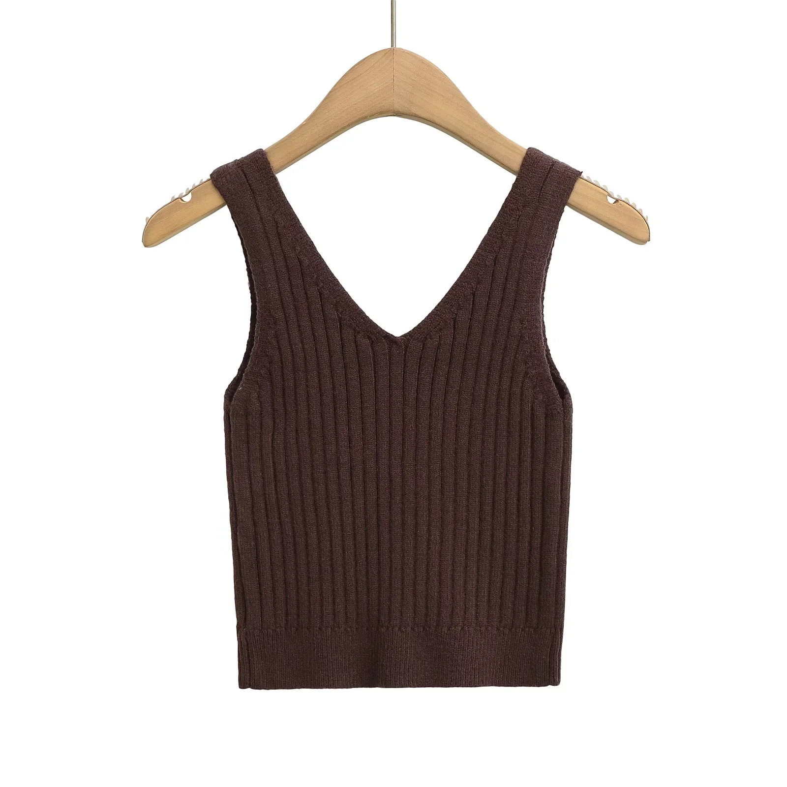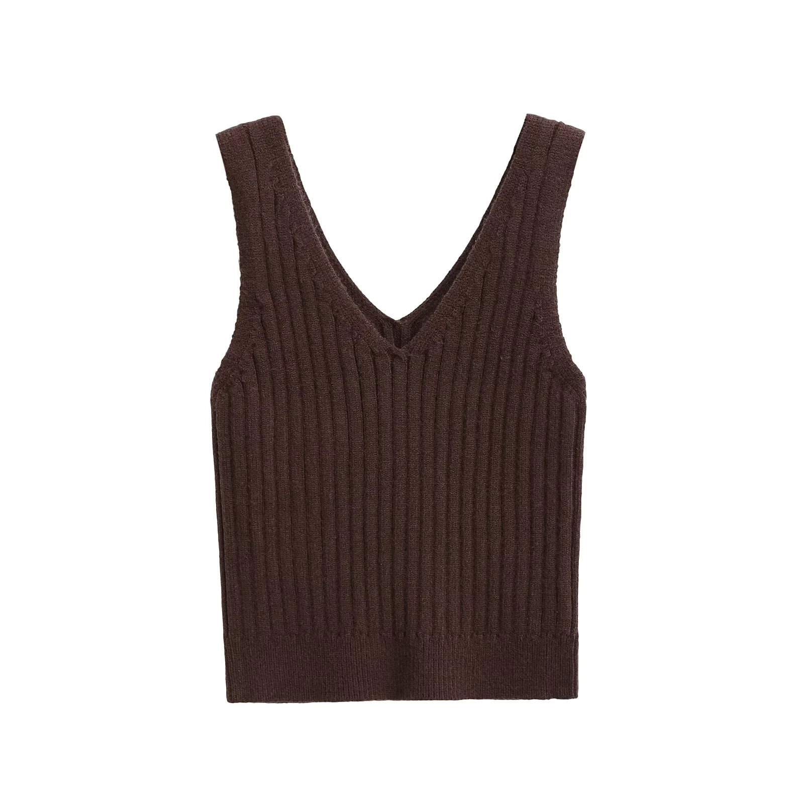 Deep V-neck knitted camisole vest