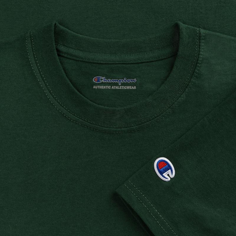 This loose-fitting T-shirt is a unisex basic whose heavy fabric gives it a premium-quality feel. The “Champion” logo on the sleeve gives this shirt a sporty flair. Pairs perfectly with joggers.